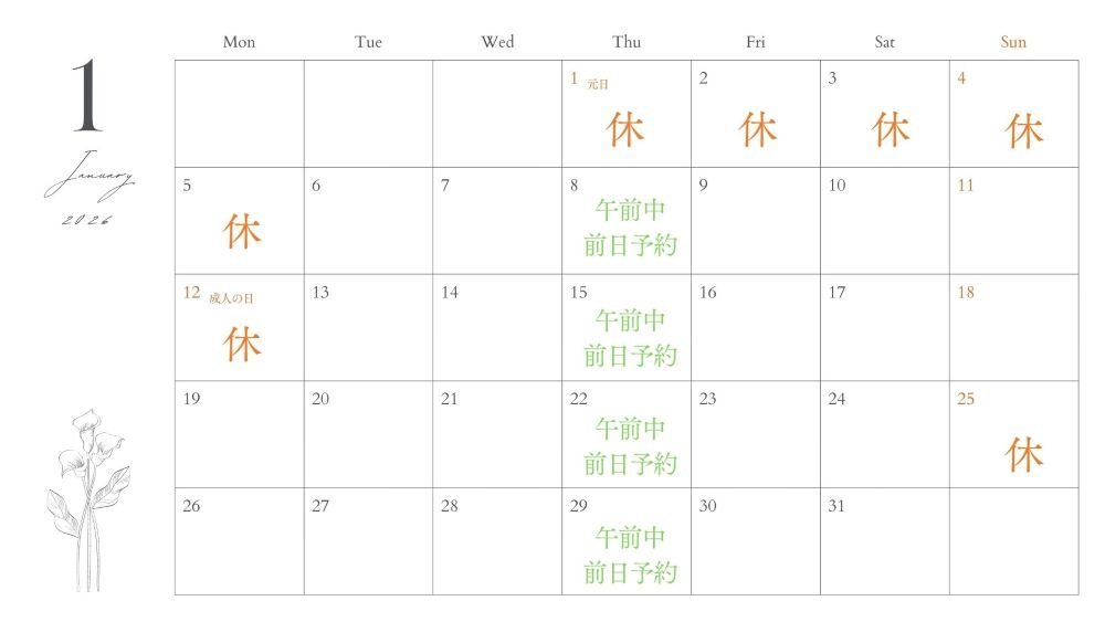 毎週木曜日は前日までのご予約受付で午前中のみ営業いたします。