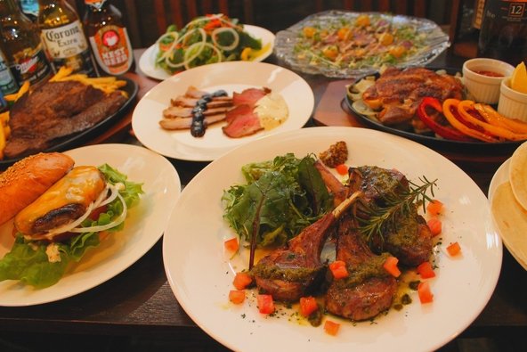 ◆2時間 L.O30分前 4,200円 肉好きも唸らせる贅沢コース、心ゆくまでご堪能ください。和牛タタキ風カルパッチョにジビエ料理、USアメリカンステーキなど ★コース内容 ・和牛タタキ風カルパッチョ ・本日のジビエ料理 ・USアメリカンステーキガーリックソースとポテト ・ここで1回グリーンサラダ ・メキシカンチキンファヒータ トルティーヤ付 ・骨付き柔らかラム肉の低温ソテー ・当店名物アメリカンチーズバーガーハーフ 品数:全7品 受付人数:4名様~25名様 コース提供時間 120分制 予約期限 2日前の23時までにご予約ください