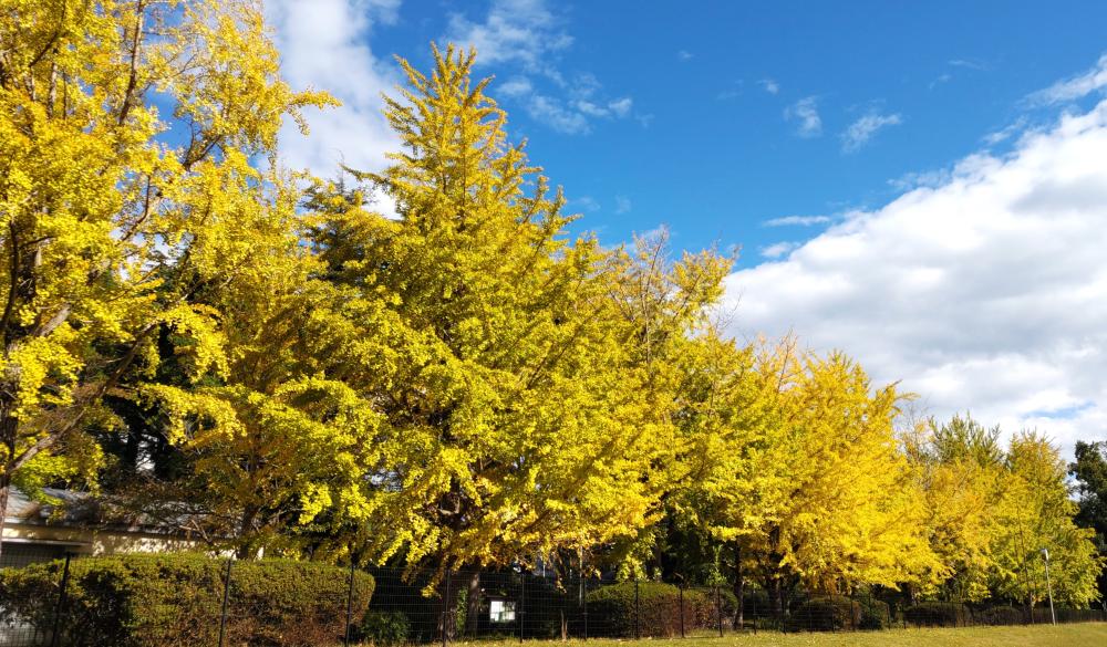 11月に入り、天気もよかったので、ウォーキングをかねて公園内にある銀杏並木の紅葉具合を見てきました。だいぶ黄色く色づいていて、綺麗でしたが、黄緑色の葉も見られたので、もう少し経ってからのほうがより綺麗な紅葉が見られるとおもいます。