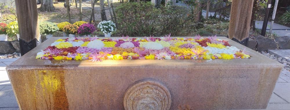 平日にもかかわらず、たくさんの人。菊まつりです。色鮮やかで、お花がキラキラして見えて、とても美しかったです。遠くから見ても近くで見ても楽しめるのが魅力的。お猿さんのショーもやっていました。手を清めるお水は菊の花が浮かんでいてきれいでした。