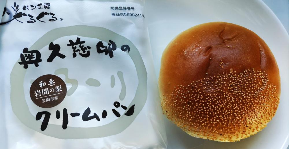 笠間市岩間町の栗を使ったクリームパンがあったので購入しました。 渋皮も入ったとろ~りとしたクリームは、栗の風味が感じられおいしかったです。