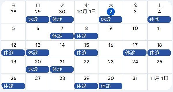 10月の休診カレンダー