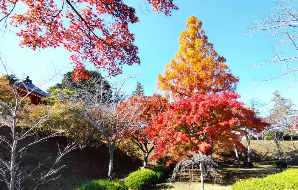 桜で有名な公園ですが、紅葉はどうなのかと思い、「西山の里」から近いので入ってみました。もみじの木が少ないですが、所々にあり、赤く紅葉していました。個人的に綺麗だと思ったのは、久昌寺裏から義公廟に登る階段と登り切ったところです。階段はもみじのトンネルのようになっています。登り切った右側には、もみじと一緒に、黄色に紅葉した大木があり、綺麗でした。